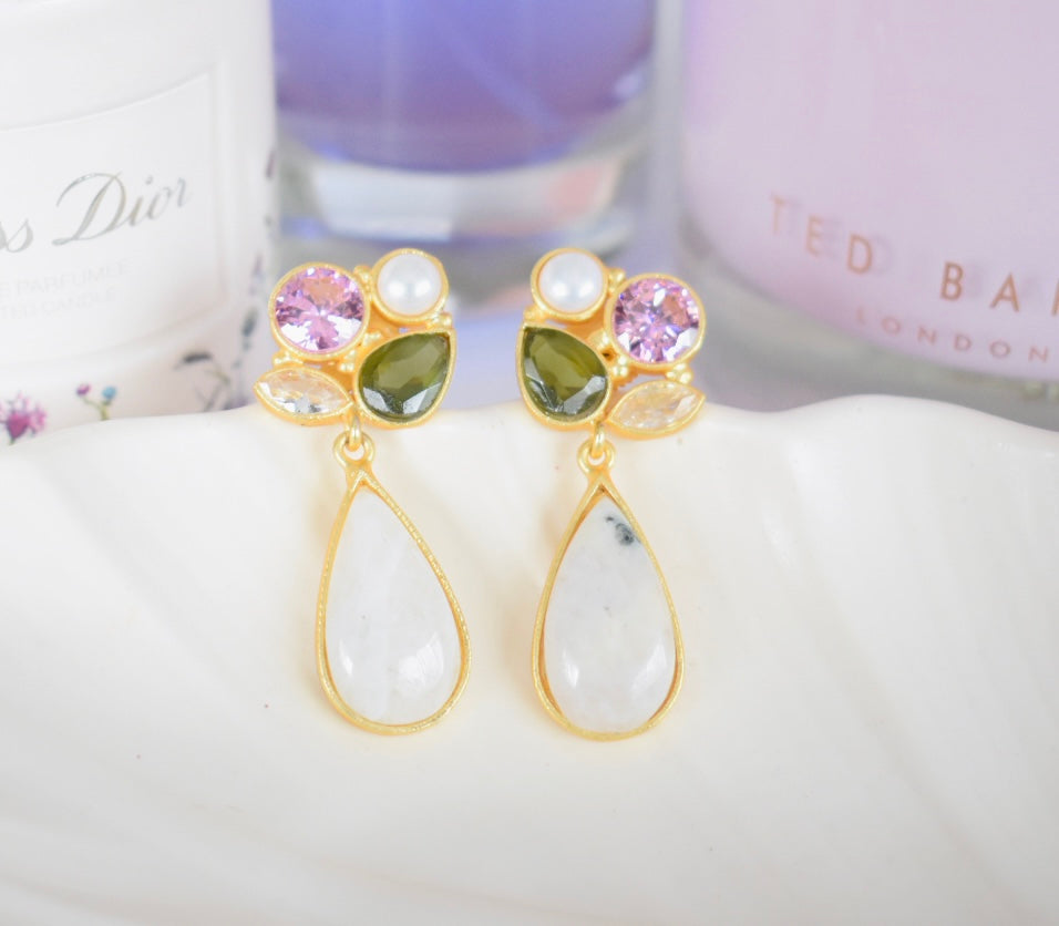 Graceful and intricate, our Perfectionist delicate drops are individually handcrafted with moonstone, labradorite, freshwater pearls, and Swarovski crystals.